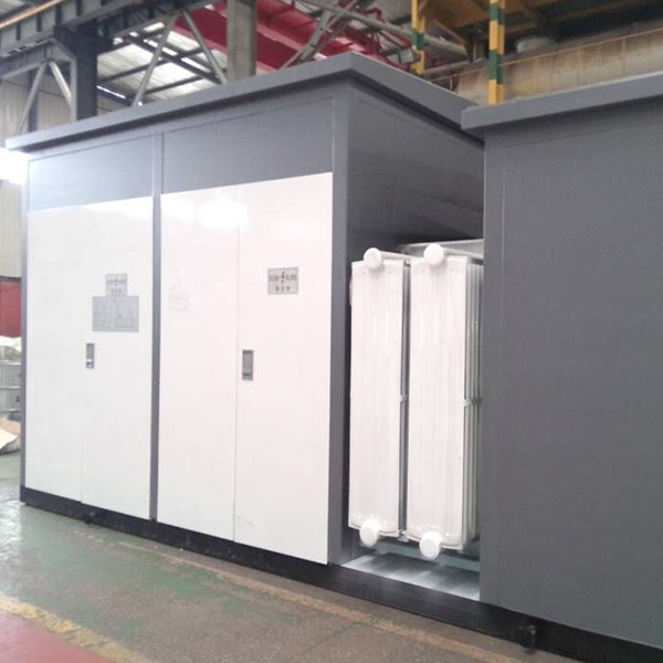 The compact prefabricated type is the placed outside the transformer shell, and the transformer is divided into high voltage chamber and low voltage chamber through the baffle board of the transformer shell, which is mostly used for the boost transformer of new energy power generation.